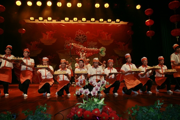 第四届饮食文化节颁奖晚会于29日在校影剧院举行。副校长鲍滨福,学校相关部门负责人出席了颁奖晚会,后勤员工及家属共800余人观看了晚会。集贤食堂、林和餐饮公司获得本届饮食文化节团体一等奖,陈灵通等十位员工获得“十佳服务员”称号、吴科伟等十位员工被授予“饮食事务先进工作者”称号。晚会现场,食堂员工用自编自演的节目,生动再现了我校饮服保障工作的点点滴滴,用独特的“烹调”方式为大家制作了一场盛大的视听宴席。
