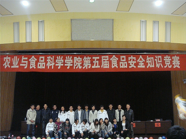 11月22日晚,学校第五届食品安全知识竞赛(决赛)在东湖校区图书馆第一报告厅举行,本次竞赛活动由农业与食品科学学院主办。农业与食品科学学院、旅游与健康学院(茶文化学院)、工程学院、人文学院、经济管理学院以及环境科技学院六支代表队参加了决赛。