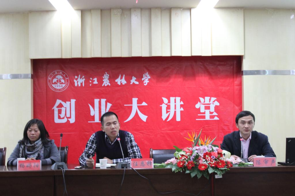 11月24日下午,“创业大讲堂”第四讲在图书馆第二报告厅成功举办。浙江玉环绿野农业科技有限公司总经理汪恩锋,天台县田禾粮食专业合作社理事长杨娇阳,景宁硕园爱心灵芝专业合作社理事长刘宇作为受邀嘉宾,与我校大学生就大学生现代农业创业的发展前景及机遇挑战为主题进行了交流。