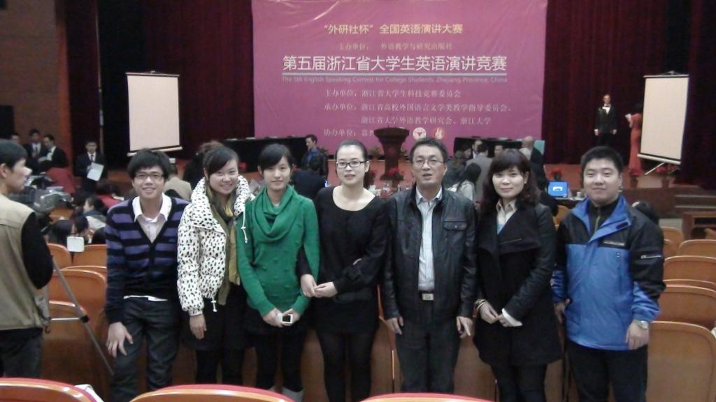 2010年11月20日—21日,“外研社杯”全国英语演讲大赛预备赛第五届浙江省大学生英语演讲竞赛在嘉兴学院举行。我校外国语学院由方薇老师和应承菲老师指导的陆超逸等三名参赛选手以敏捷的思维能力、标准流利的口语和出色的临场应变能力喜获二等奖;天目学院08级学生滕芳萍获得了三等奖的好成绩。