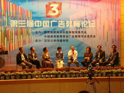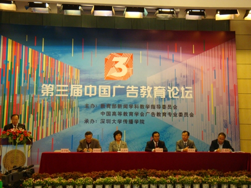 第三届中国广告教育论坛由教育部新闻学科教育指导委员会、中国高等教育学会广告教育专业委员会、全国大学生广告艺术大赛组委会联合主办,深圳大学传播学院承办。围绕论坛的核心主体“创意产业与广告教育改革”,广告教育界、业界的著名专家学者介绍和交流了广告专业研究的成果、最新教学理论与实践、行业动态。