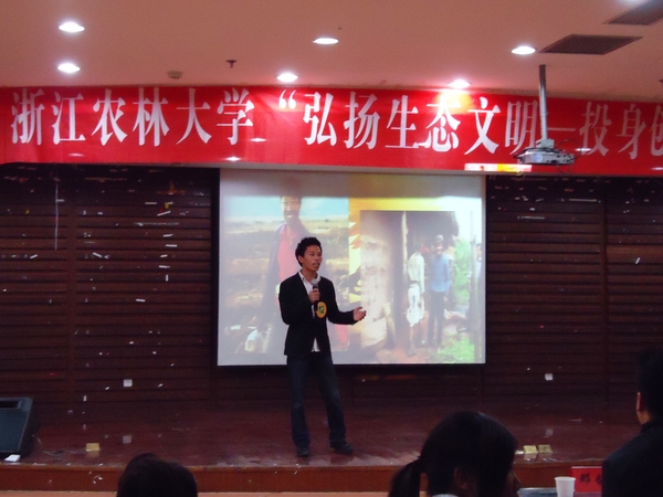 经各学院(部)初赛,30位选手分别围绕“生态文明”、“创新创业”主题,结合大学生实际,阐述了自己的观点。来自人文学院的应思思同学提出“大学生不是缺乏创新创业的能力,而是缺乏一种意识、一种信念”;来自研究生部的田纪君同学作了《用青春谱写绿色音符》的演讲,立足当今生态危机,阐述了保护生态环境的重要意义;来自经济管理学院的陈思思同学呼吁“作为一名浙江农林大学的学生,我们要尽自己的力量保护生态环境,弘扬生态文明”。
