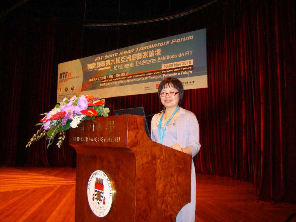 11月6—8日,外国语学院教师陈秀参加了在澳门大学举办的“国际译联第六届亚洲翻译家论坛”。论坛以“翻译与跨文化交际:历史、现状与展望”为主题,涵盖了翻译研究的多个方面的议题,国际译界著名学者Douglas Robinson、Christina Schäffner,国际译联副主席黄友义等做了主旨发言。陈秀老师宣读了论文《翻译‘忠实’新解》,并与学者们进行了富有成效的交流。