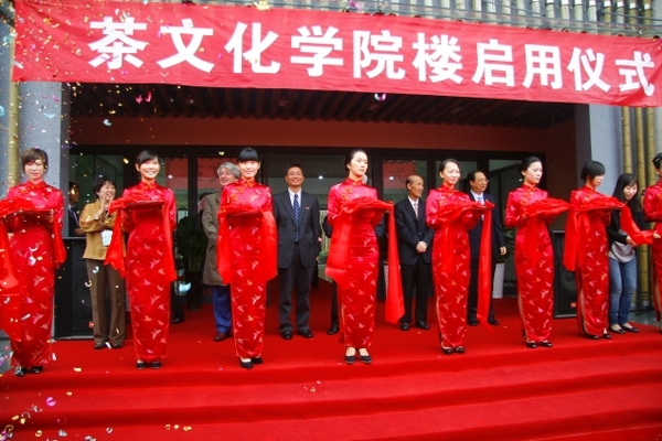 10月23日上午,学校隆重举行茶文化学院楼启用仪式。省政协主席、中国国际茶文化研究会会长周国富,省政协原主席、中国国际茶文化研究会名誉会长刘枫,中国国际茶文化研究会常务副会长徐鸿道,杭州市茶文化研究会会长虞荣仁,省农业厅副厅长朱志泉,校党委书记宣勇,临安市委书记邵毅等领导嘉宾和茶文化学院师生代表近200人参加了启用仪式。