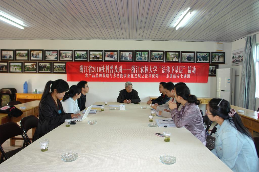 近日,为了响应省委宣传部和省社科联2010年浙江省社会科学普及周活动的号召,人文学院部分教师和学生开展了主题为“农产品品牌战略与多功能农业化发展之法律保障——走进临安太湖源”的人文社会科学下基层活动。