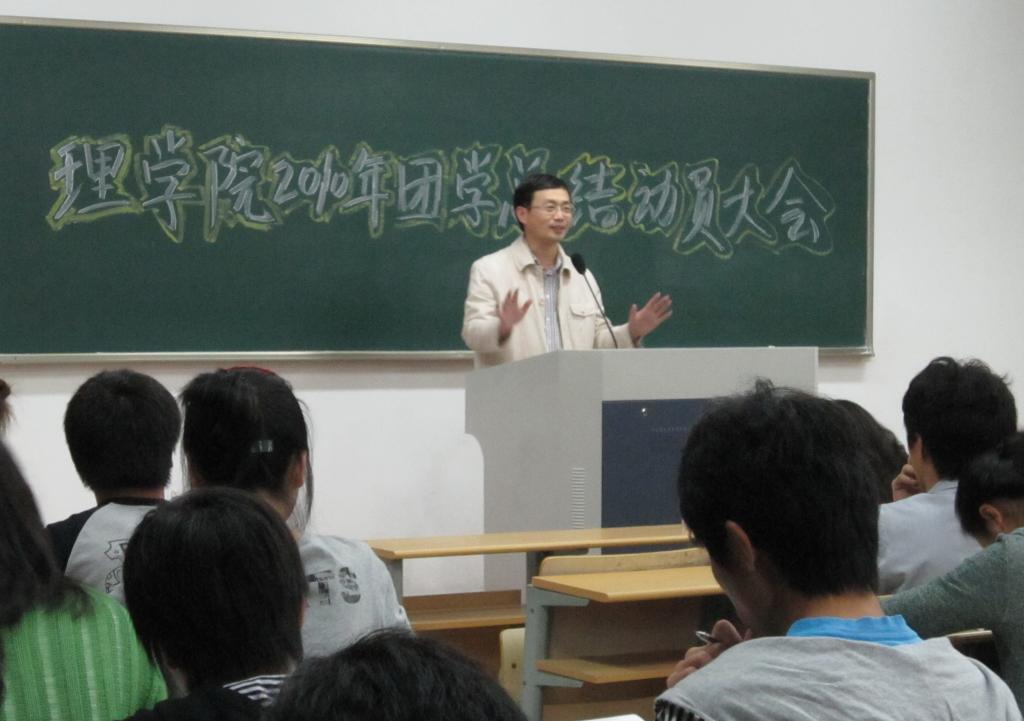 9月27日晚,理学院分团委、学生会在教4-103召开2010年团学总结动员大会。党总支书记冯金明及全体辅导员,各团学成员,2010级各班班长、团支书参加了此次大会。