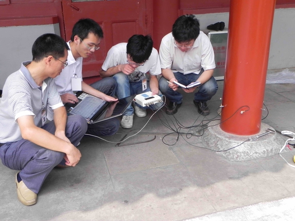 日前,信息工程学院李光辉教授率领课题组成员应邀对北京天安门东西朝房木质结构进行无损检测。据了解,天安门朝房始建于明朝初年,历经明清两个王朝,距今已有600多年。课题组成员利用自主研发的木材无损检测设备对天安门朝房的所有木质立柱和横梁进行了多方位的检测,检测结果将作为被测对象是否需要维护加固的重要依据。