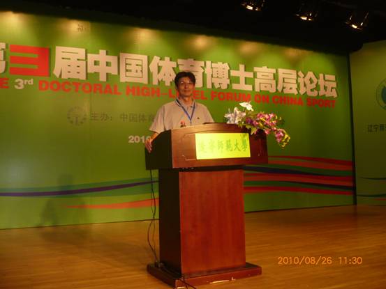 由中国体育科学学会主办、辽宁师范大学承办的第三届中国体育博士高层论坛于8月25日至29日在辽宁师范大学召开。来自国家体育总局等相关职能部门的领导及国内体育界知名的专家、学者分别就“体育强国的构建”、“竞技体育研究的学科体系建设”、“体育文化与体育产业”、“群体研究与健康促进”、“体育教育与博士生培养”等5个专题与国内近百位体育博士进行深入研讨与广泛交流。