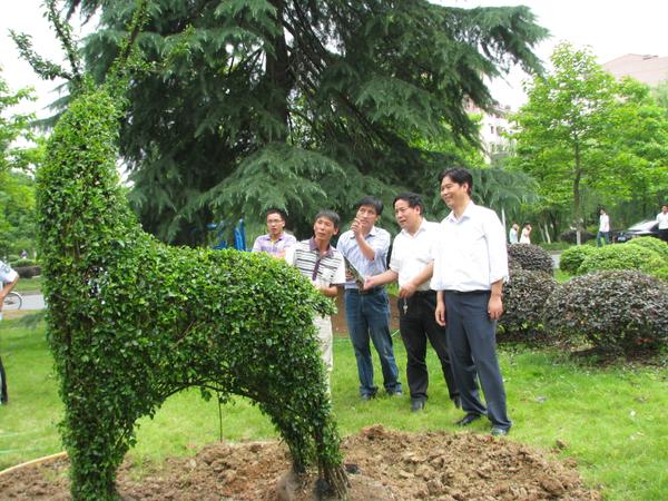 值此我校举行揭牌庆典之际,浙江绿亚林业种苗有限公司、董事长卢廷高校友捐赠给母校1只高达4米的紫薇花瓶和2只梅花鹿造型的植物小蜡,价值达10万余元。按照我校植物园的整体布局风格和有关专家建议,种植于东湖校区教2西北角,为学校又增添了一道亮丽风景。