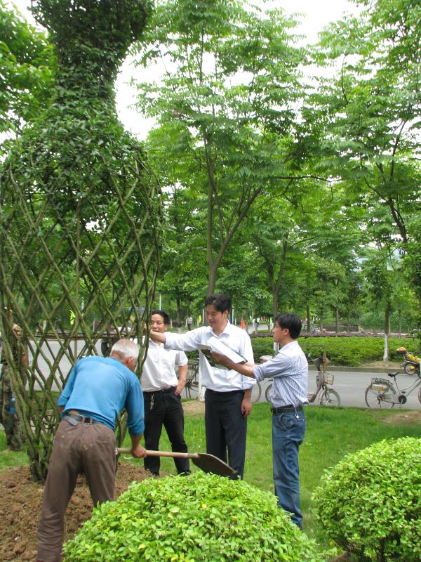 种植时,副校长鲍滨福等领导亲临现场指导。