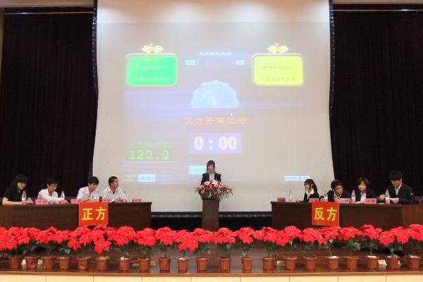 闭幕式上,举行了第四届“争鸣杯”辩论赛总决赛。环境科技学院与园林学院辩论队以“学海无涯苦作舟”和“学海无涯巧作舟”为题,林生与生物技术学院与人文学院以“大学生,IQ诚可贵,EQ价更高”和“EQ诚可贵,IQ价更高”为题,分别进行了激烈舌战。最后,林生与生物技术学院摘得辩论赛桂冠,人文学院获得亚军,环境科技学院为季军,刘晓茜、屠晓波获得“最佳辩手”称号。