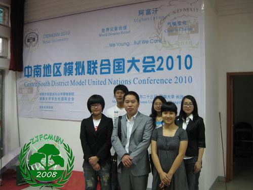 在人文学院徐金峰老师的带领下,我校代表队分为中、英文两个委员会,英文委员会的环境规划署(UNEP)由法学081王璐、英语084吴薇薇同学代表尼日利亚出席,主要探讨世界灾害救援和气候变化的议题;中文委员会的安全理事会(SC)由法学092刘哲彬、茶文化082张丹青同学代表尼日利亚出席,主要探讨阿富汗问题;法学071吴靖靓同学担任了英文委员会的大会主席。