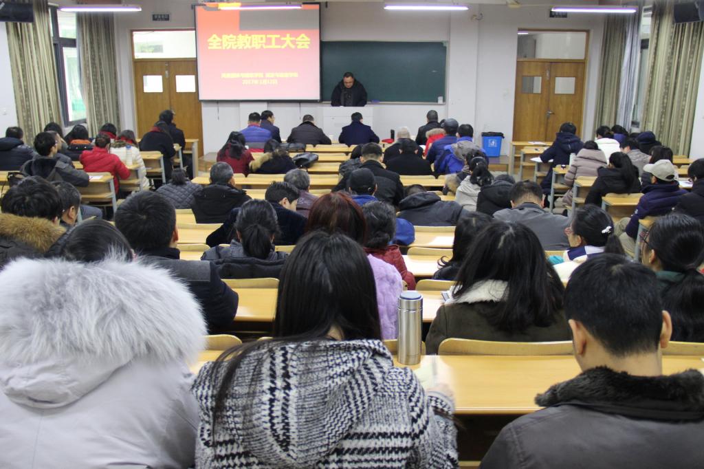1月12日下午,园林学院在学4-108教室召开全院教职工大会,进行学院领导班子和个人民主测评,总结2016年度工作。学院党政领导班子及全院教职工参加会议,会议由党委书记王小德主持。