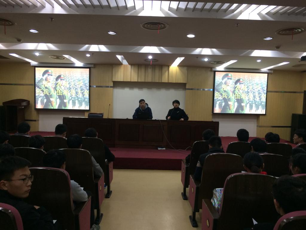 为做好2017年征兵工作,积极响应国家征集大学生参军入伍的号召,增强大学生自觉履行爱国从军义务的意识,近日,学校召开征兵动员会,各学院学生参加了大会。