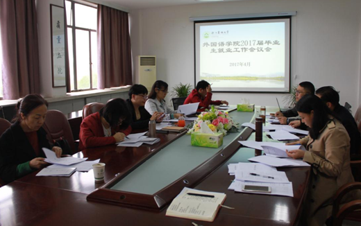4月7日下午,外语学院召开了2017届毕业生就业工作会议,学院党政领导、各系部负责人、毕业班班主任参加了会议。会议由学院党总支书记张敏生主持。