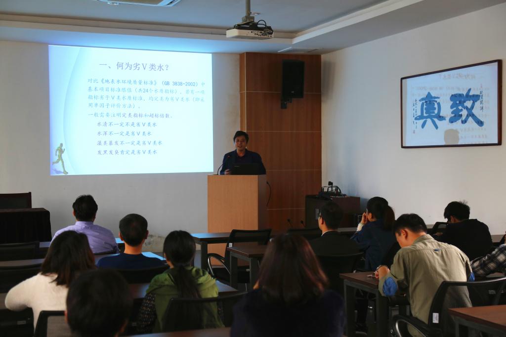 浙江省“剿灭劣V类水”首席技术顾问、浙江省“五水共治”科技专家组成员曹玉成教授为全院教职工作了专题报告,重点对“劣V类水”的概念、形成原因、剿灭方法、案例介绍等方面进行了详细介绍。