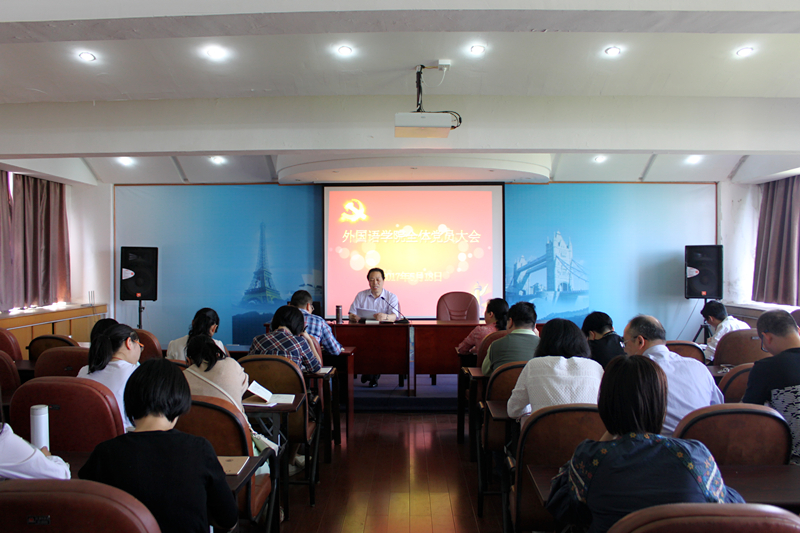 近日,外国语学院召开全院教工党员大会,学院党总支书记张敏生传达了中共中央办公厅《关于推进“两学一做”学习教育常态化制度化的意见》、省教育工委《高校基层党建全面落实年活动方案》等文件和学校关于2016年“两学一做”学习教育总结及下一步工作部署会议的精神。
