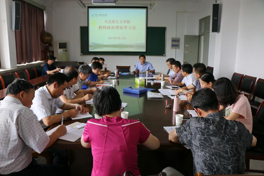 6月15日下午,马克思学院召开政治理论学习会,学院党总支书记李勇华主持学习会并讲话,学院全体教师参加学习会。