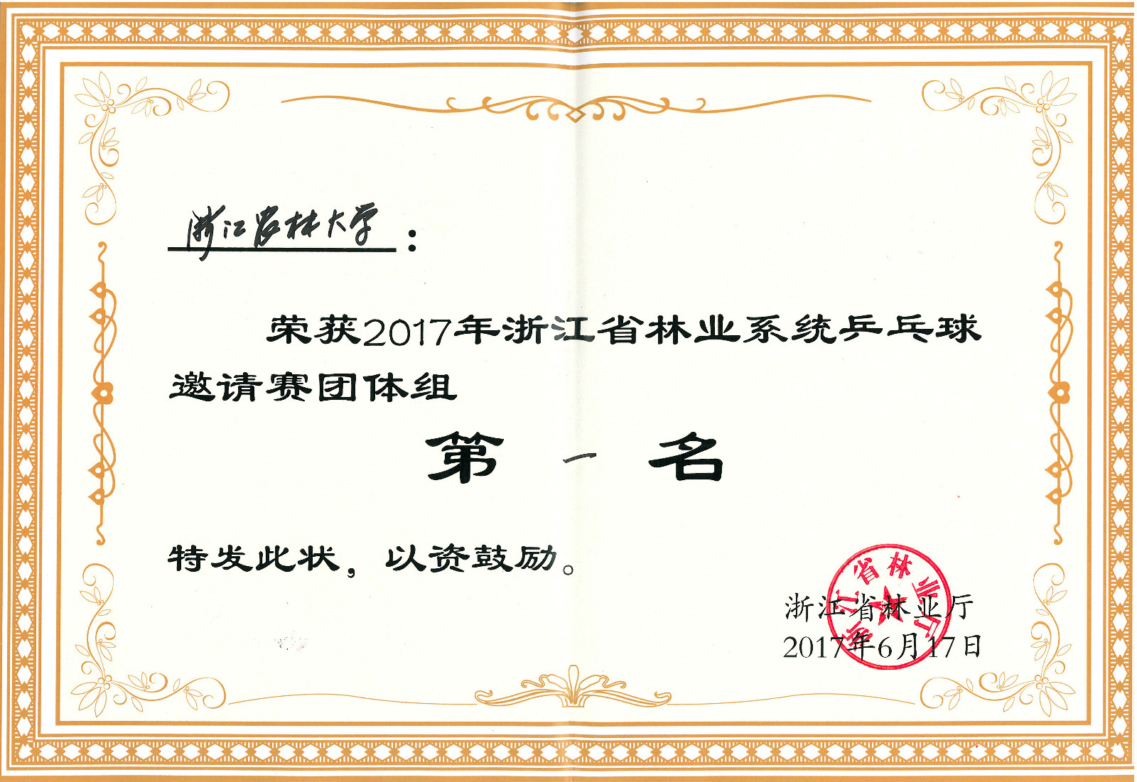 近日,2017年浙江省林业系统乒乓球邀请赛在丽水举行。受浙江省林业厅机关党委邀请,我校组队参加比赛,并获团体组冠军。
