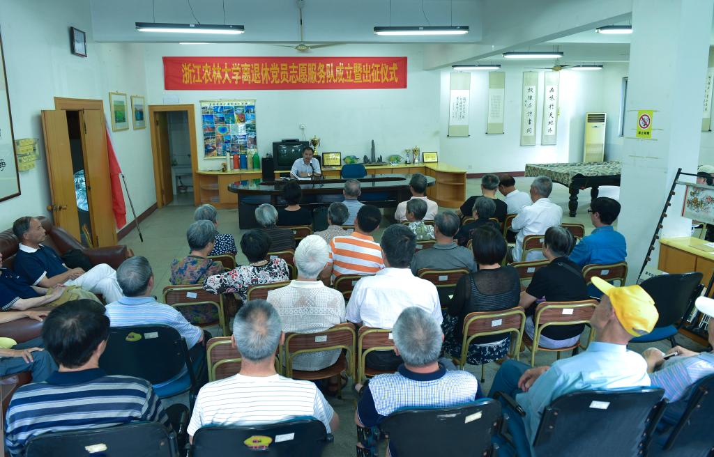 在党的第96个生日即将到来之际,离退休党总支在学校离退休活动中心举行“离退休党员志愿服务队成立暨出征仪式”,包括志愿者在内的50多名离退休党员同志参加了仪式,仪式由离退休党总支负责人主持。