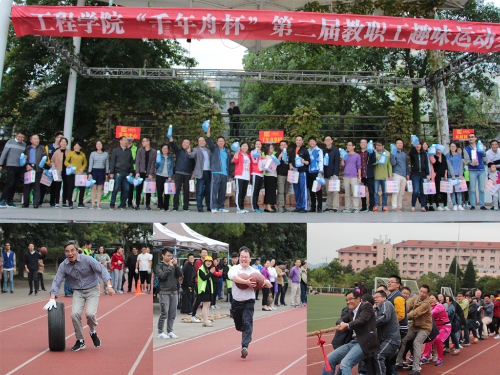 为提高教职工的身体素质,增强教职工团结协作精神,10月19日下午,工程学院“千年舟杯”第二届教职工趣味运动会举行。体军部、校工会、千年舟投资集团有限公司等相关负责人,以及学院70余名教职工参加运动会。