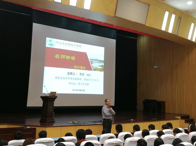 近日,国家杰出青年基金获得者、国家百千万人才,林生院院长李彦为学院2017级新生做成才导航报告。报告分为科学知识普及和大学生活适应两个部分。
