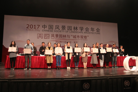 年会进行了颁奖仪式,学院金荷仙教授合作参与的《杜鹃在西湖景区彩化提升工程应用中存在的问题及对策研究》在学会优秀科技成果评审中获得三等奖,晏海副教授的论文《城市公园绿地对周围城市环境的降温效应及其影响因子研究》获得学会年会优秀论文评选二等奖,两组学生作品获得了学会大学生设计竞赛本科组三等奖。