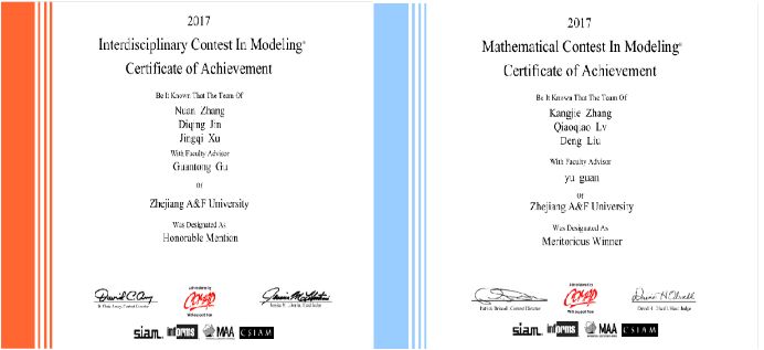 11月21日,由教育部高等教育司、中国工业与应用数学学会共同主办的“2017高教社杯全国大学生数学建模竞赛”成绩揭晓,理学院学生组成的代表队经过三天三夜的刻苦钻研、团结协作,共取得了浙江赛区一等奖一项、三等奖二项的优异成绩。同时我校代表队在美国数学建模竞赛中分获国际一等奖一项,二等奖一项。