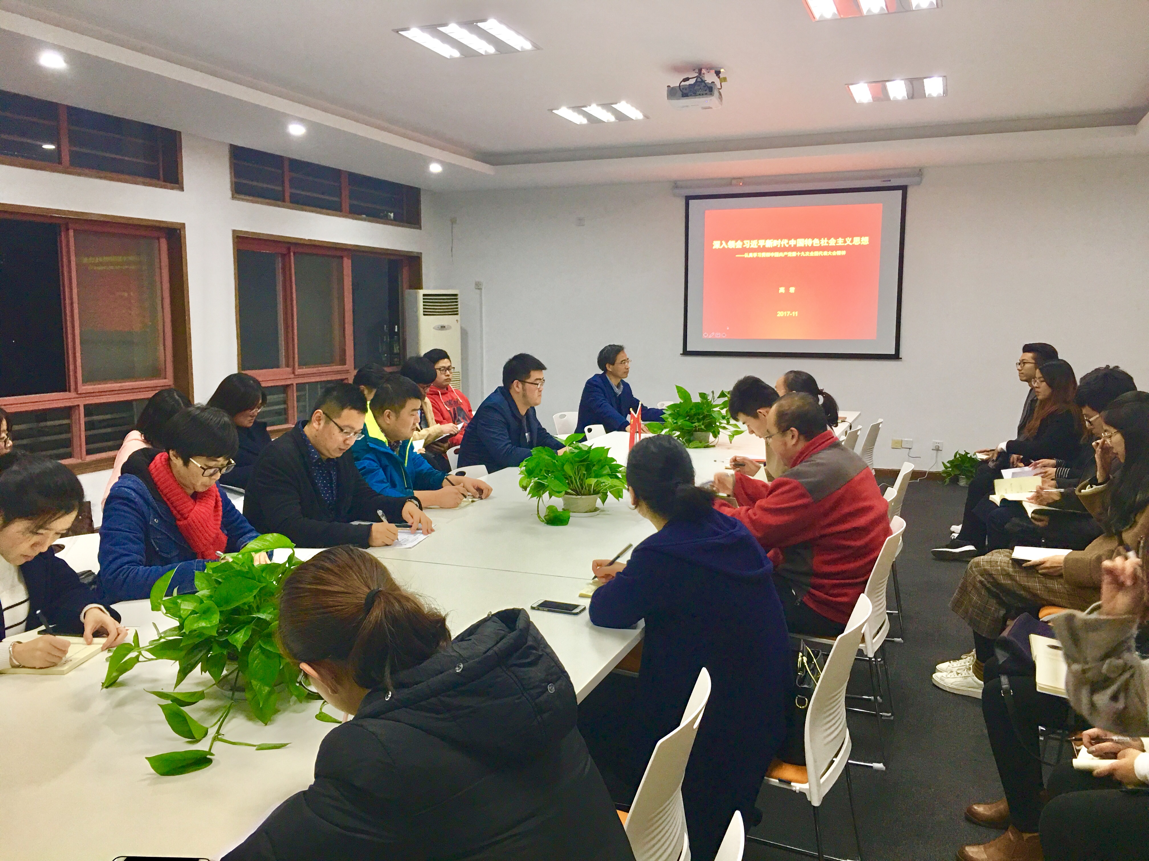 11月28日,校团委委员、学生会委员在青年“同伴”工作室会议室集中学习十九大精神,马克思主义学院高君教授授课。