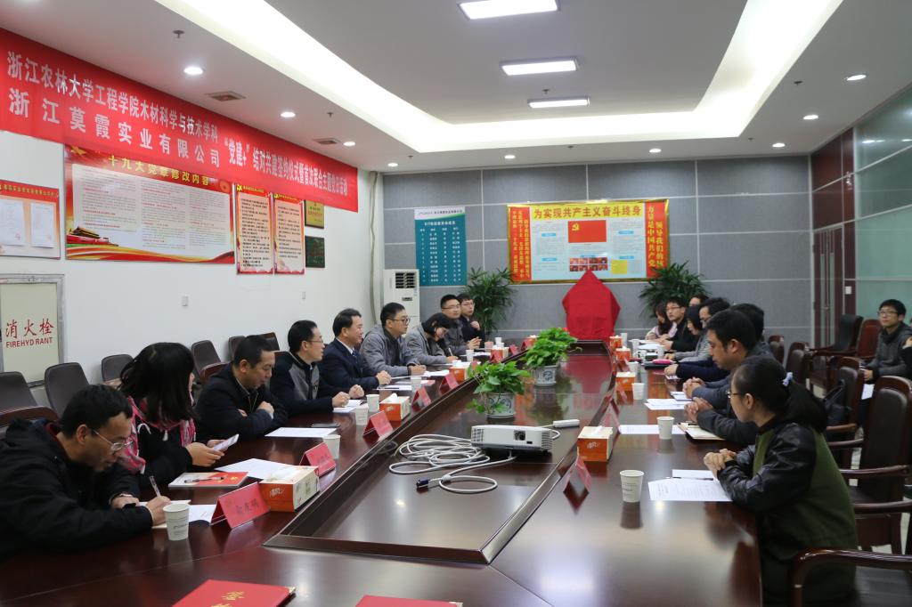 近日,工程学院木材科学与技术学科党支部和浙江莫霞实业有限公司党支部举行“党建+”结对共建签约仪式,并开展联合主题党日活动。学院党委书记朱红东、德清县组织部县委两新工委相关负责人出席仪式。