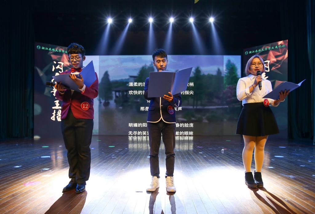 12月2日,浙江农林大学第十二届“闪亮新主播”语言主题大赛总决赛在东湖影剧院顺利举行。校党委委员、宣传部部长胡祖吉及学校相关部门负责人、辅导员代表、历任校通讯社社长和广播电台台长,各学院学生代表900多人观看总决赛晚会。