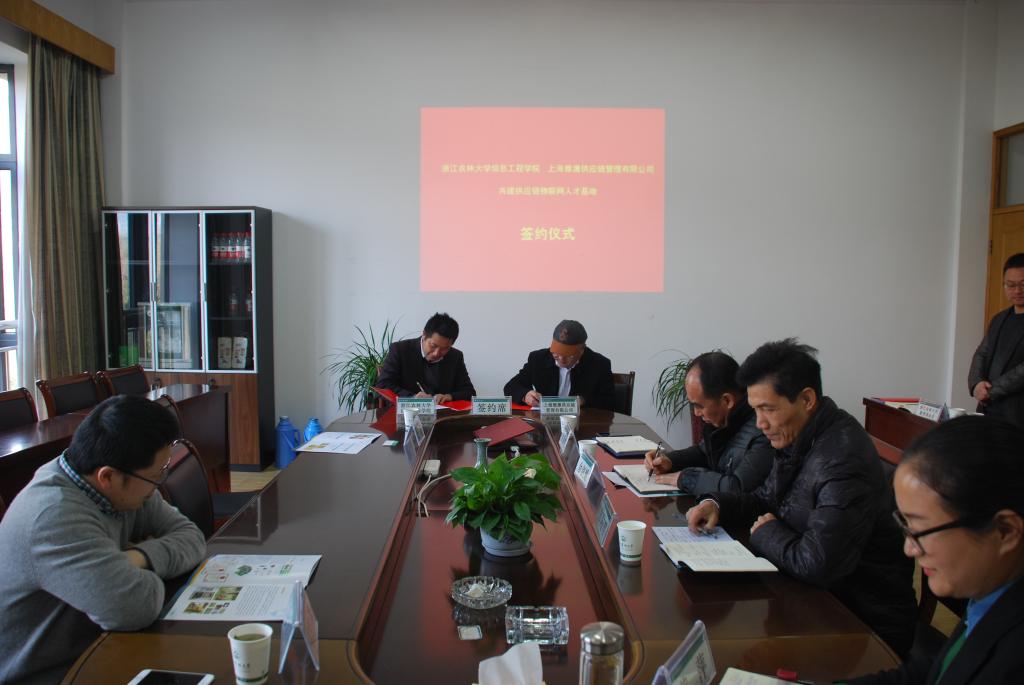 12月11日,信息工程学院、上海雅澳供应链管理有限公司共建供应链物联网人才基地签约仪式暨浙江农林大学教育基金捐赠仪式在学校学11会议室举行,雅澳公司执行总裁朱虓、校友办主任余剑耀、信息学院院长徐爱俊、党总支书记方陆明出席仪式。