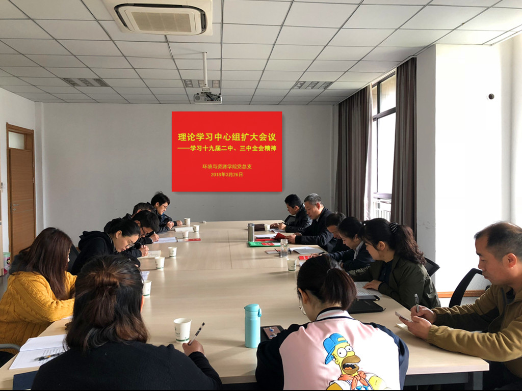 3月26日上午,环境与资源学院召开理论中心组扩大会议,专题学习十九届二中、三中全会精神。