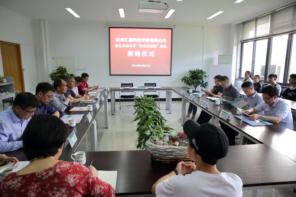 近日,杭州汇图网络科技有限公司捐赠仪式在农学院举行。校友办主任余剑耀,校体育军训部主任冯祎中,农学院党委书记蔡永华、副院长刘兴泉,我校四位校友——杭州汇图网络科技有限公司董事长黄元斌、法定代表人章良明、总经理朱明君、副总经理叶航箭等出席仪式。