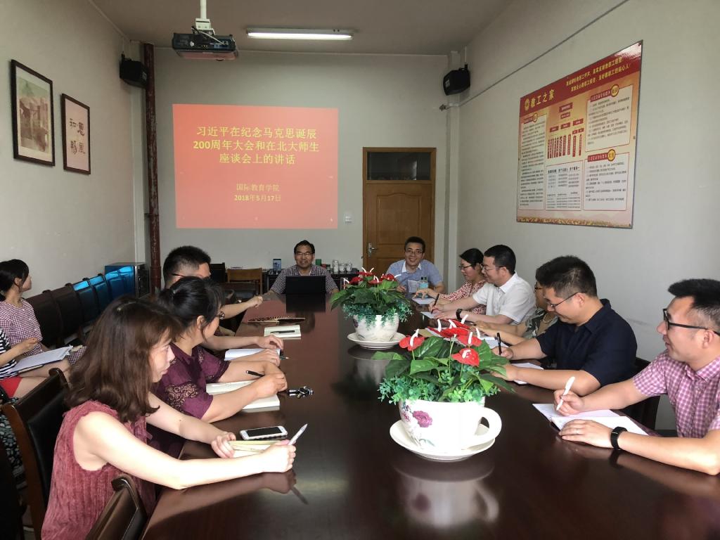 5月17日下午,国际学院组织教职工专题学习习近平总书记在北京大学师生座谈会和纪念马克思诞辰200周年大会上的重要讲话精神。院长兼直属党支部书记赵有华主持会议,全体教职工参加学习会。