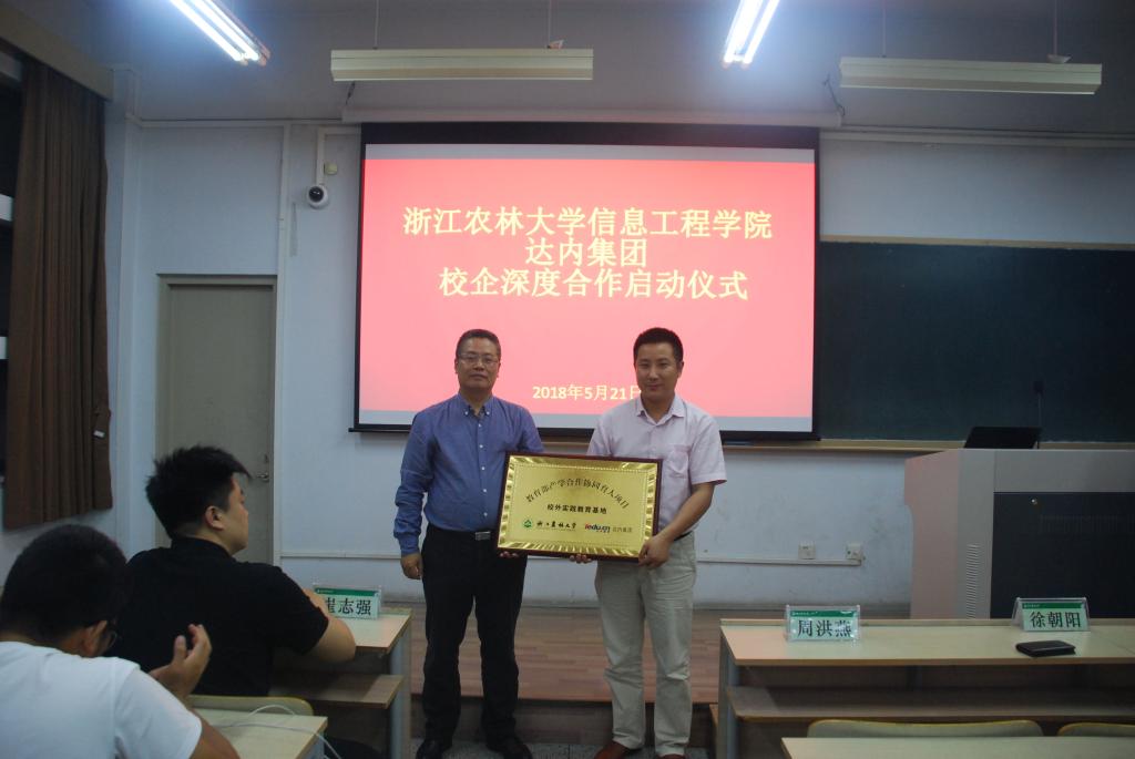 徐爱俊与徐朝阳分别代表院企双方签署了校企合作协议书。