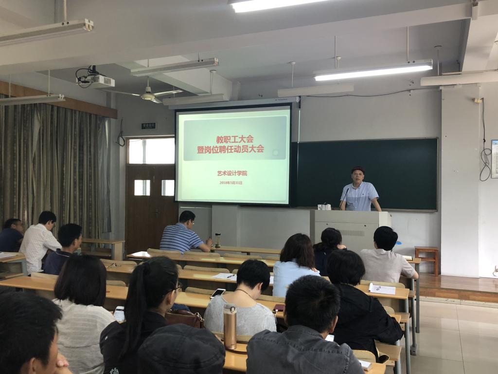 5月31日下午,艺术设计学院召开全体教职工大会,动员大家共创学院美好未来,并积极参与2018年岗位聘任工作。