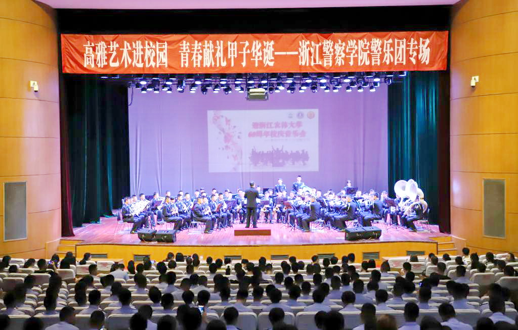 近日,“高雅艺术进校园 青春献礼甲子华诞——浙江警察学院警乐团”专场音乐会在我校活动中心影剧院举行,为我校师生献上一场精彩绝伦的管乐盛宴。全校600余名师生观看了精彩的演出。