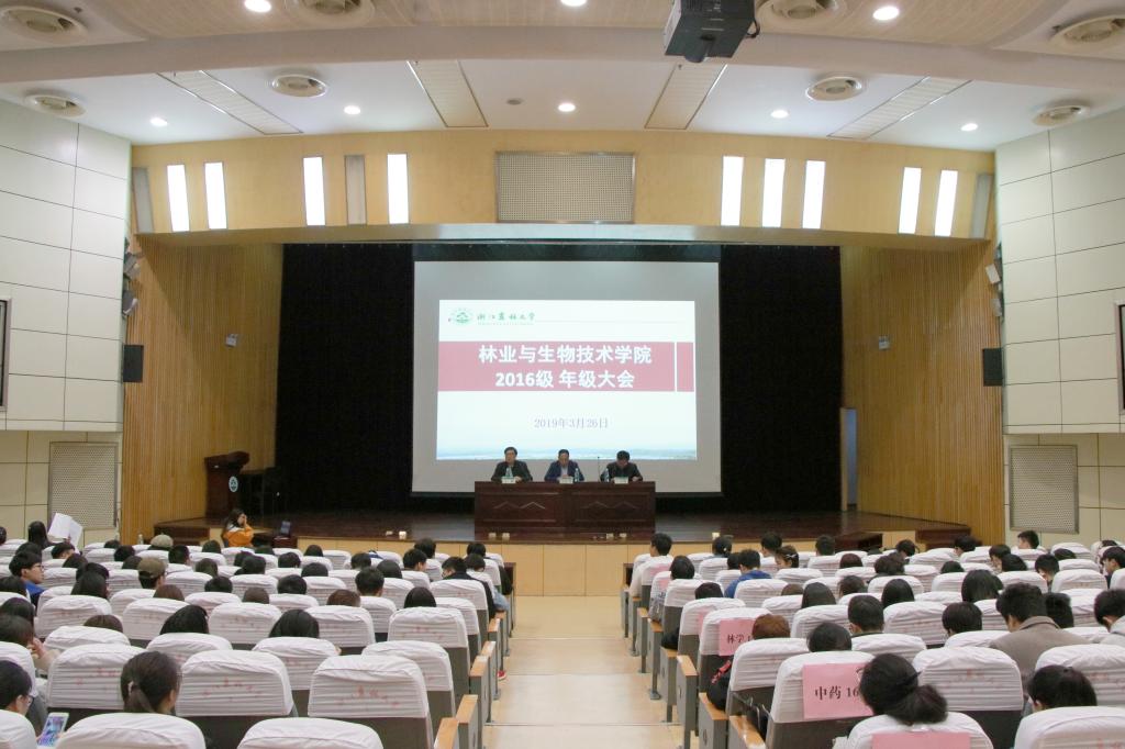 为进一步深化学院“三全育人”工作,做好学生高质量就业指导与服务,3月26日下午,林业与生物技术学院于图书馆第一报告厅举行2016级学生考研指导与动员大会,学院副院长王正加,班主任、辅导员及2016级全体学生参加本次大会。会议由学院学生工作负责人主持。