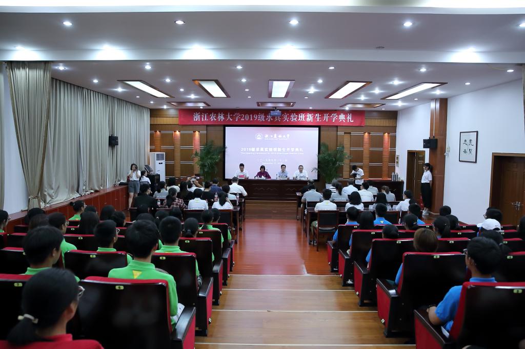 9月13日,浙江农林大学2019级求真实验班新生开学典礼在集贤大讲坛隆重举行。副校长沈月琴,学工部、教务处等部门负责人出席典礼。新生班主任、任课教师代表、集贤学院全体教职工、2018级求真实验班学生代表及2019级求真实验班全体新生共同参加了开学典礼。开班典礼前,举行了隆重的欢迎仪式。副校长沈月琴代表学校致辞,对求真实验班全体新生表示欢迎和祝贺。沈月琴希望,求真实验班新同学要坚韧不拔、不断超越,做一个有健全人格和社会责任的人;求真敬业、守正创新,做一个有学术抱负和创新精神的人;文理兼修、融通国际,做一个有人文情怀和国际视野的人。沈月琴强调,学校将最先进的教育理念、最优质的任课教师、最丰厚的教学资源和最健全的管理团队倾加于求真实验班。她要求求真实验班老师们要像对待自己的孩子一样对待学生,“让优秀的孩子更优秀”;要用自身的专业学识和眼界以及人生经历和感悟引领同学们树立远大的理想抱负和追求;要用先进的教育理念和方法武装我们的课堂,培养学生的批判性思维和自主学习的能力。主席台领导为2019级求真实验班班主任颁发了聘书。班主任代表、教师代表、在校生代表、新生代表分别发言。典礼上,还举行了庄严的宣誓仪式。开学典礼后,集贤学院负责人以“未来人才竞争趋势与成长成才”为主题为全体新生讲授了成长教育第一课。