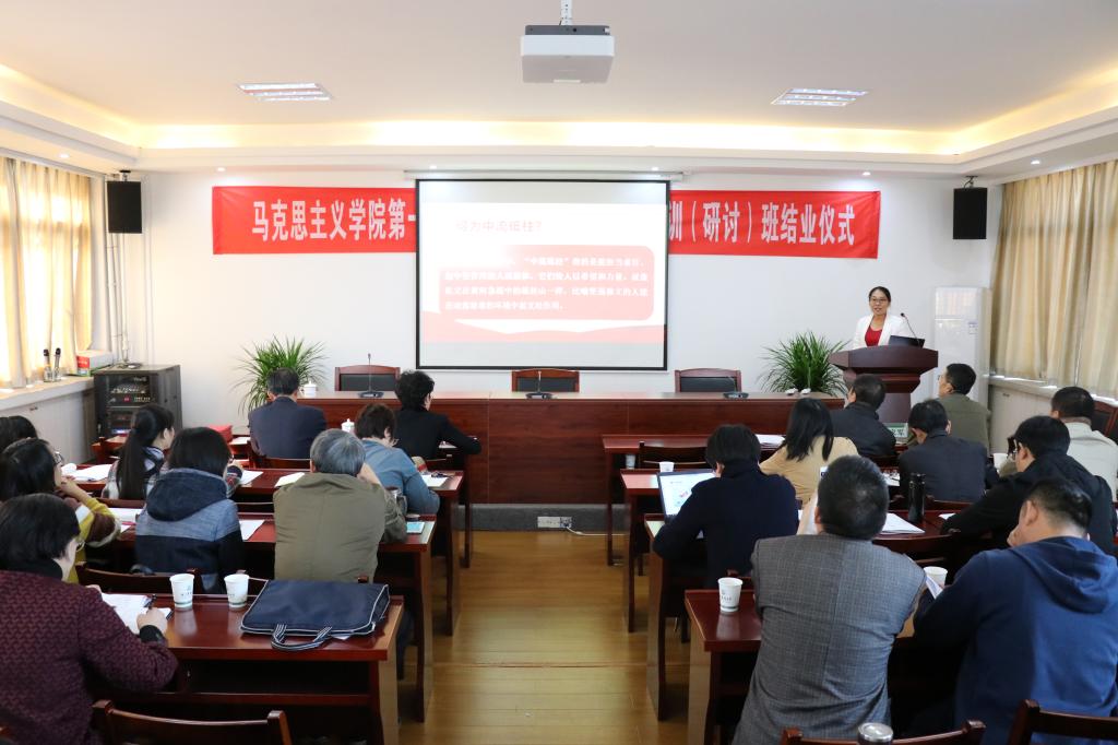 马克思主义学院院长高君教授介绍了培训班系列研讨活动的过程和进一步开展研讨活动的计划。钟宇海、周爽、李国杰、田传信、时会永、张孟镇等6位教师进行了汇报讲课。他们在培训班多次研讨的基础上,将马克思主义理论的基本原理灵活运用到思想政治理论课的教学实践中,既体现了深厚的理论功底,也展现了各具特色的授课风格,深入浅出地为与会人员上了一次系列而精彩的思政课,初步展现了培训班研修的方向、思路和成果。