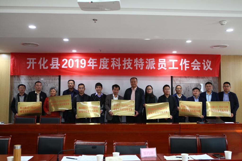 会上,经信局负责人总结了近年来科技特派员工作成效,并对下一步工作进行了部署。科技特派员代表依次进行了交流发言。学校与开化县池淮镇、苏庄镇等七个乡镇签约共建研究生培养实践基地并授牌。