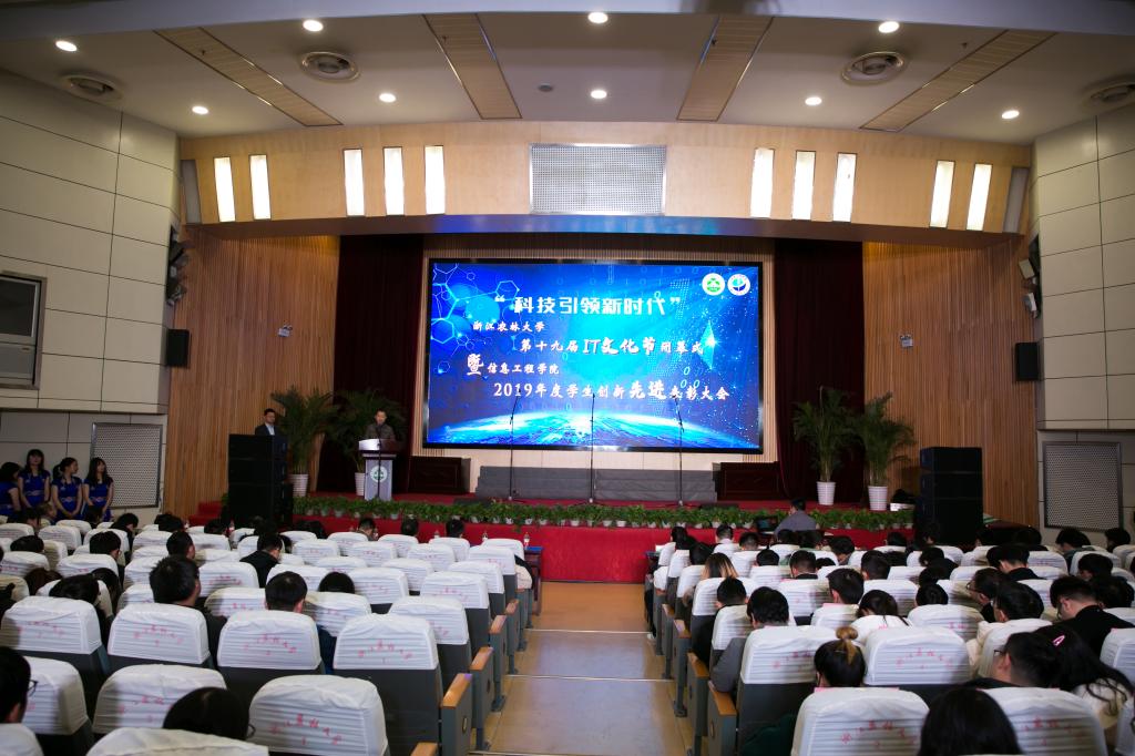 12月19日,第十九届IT文化节闭幕式暨信息工程学院2019年度创新先进表彰大会举行。校党委宣传部、学工部、教务处、校团委等相关负责人及学院领导班子成员出席会议,各专业负责人、全体辅导员、学生代表500余人共同参会。