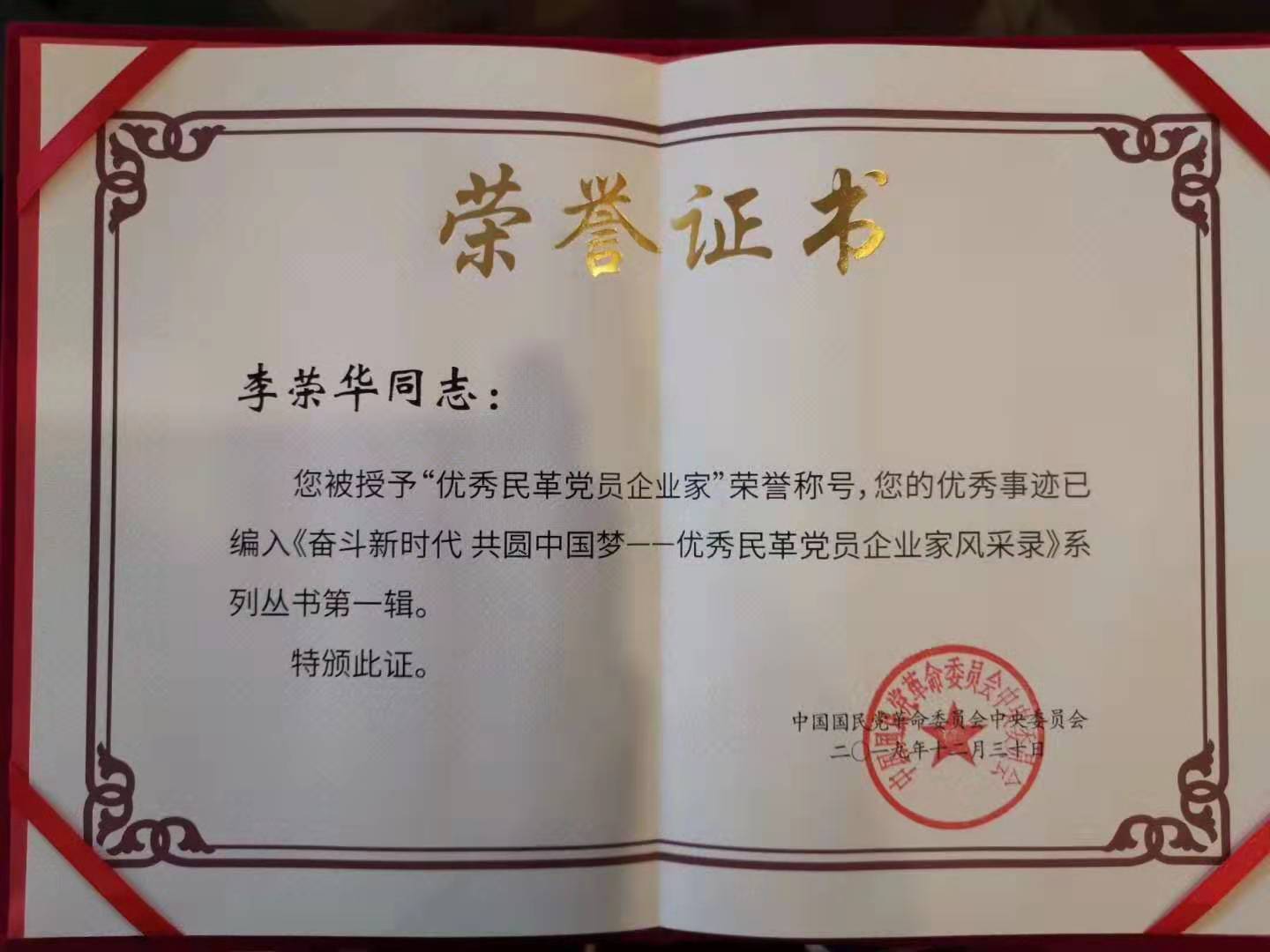 近日,中国国民党革命委员会中央委员会发布《关于表彰优秀民革党员企业家的决定》(革中〔2019〕129号),对在经济发展和社会活动中有较大影响,为民革履行参政党职能作出突出贡献的优秀民革党员企业家进行表彰。我校风景园林1996级校友李荣华被授予“优秀民革企业家”荣誉称号,其优秀事迹已编入《奋斗新时代 共圆中国梦——优秀民革党员企业家风采录》系列从书第一辑。