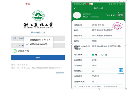 “方便、简单,再也不用每天打电话报情况,也不用在支部群、部门群、工会群、学生群等多个微信、QQ群里交表格、报平安了,师生轻轻一点进入“智慧浙农林”APP里的每日一报,每天花几秒钟就能CALL,完成浙江农林大学每个师生的“家庭作业”。“每日一报”里所填写内容与地、市标准模板相近,统一标准,学校根据权限共享给各管理部门,管理部门通过登录“云”健康管理平台及时监督防控,实现了每天填一次,多部门共享使用。”自2月6日正式上线以来,师生共报送700398次,师生填报率近100%,做到了联防联控,全覆盖准确收集信息,真正为一线防控人员松绑减负,为遍布全国各地的师生提供了便利,实现了浙农林人的科学抗疫、智慧抗疫。