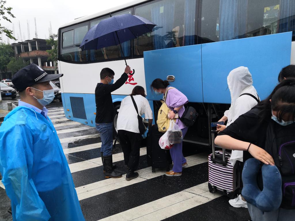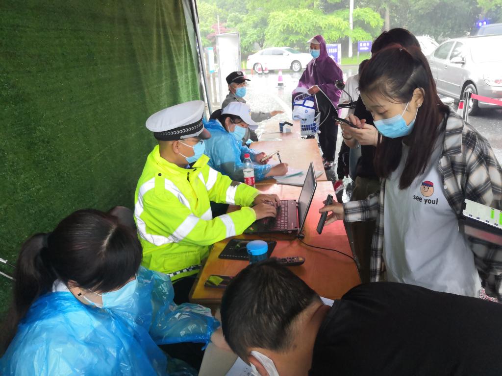 口罩遮挡不住笑意,保卫干部和校卫队员以最饱满的热情、最积极的态度和最到位的服务让每一位学子安心归来,暖心返校。