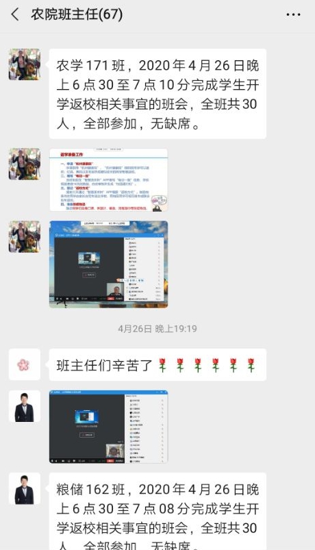 为贯彻落实《浙江农林大学2020年春季学期开学及疫情防控工作总体方案》要求,切实做好学生开学期间疫情防控,确保学生返校及开学工作安全、平稳、有序,4月26日至28日,农学院组织全体班主任分别召开学生开学及疫情防控“线上专题班会”。