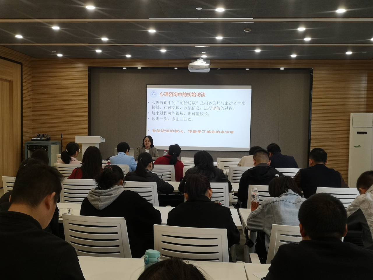 培训中,杭州医学院心理中心相关负责人以“如何完成大学生来访者的初始访谈”为主题,结合常见的工作案例讲解了初始访谈的重要性、内容及注意事项,心理咨询师应重视初始访谈之前的时间规划、场地准备、职业状态、阅读资料和敏锐的觉察;在访谈中,要坚持以人为本的理念,综合运用共情、倾听、真诚、尊重以及回应等技术,聚焦来访者本人及其需求,聚焦此时此地,了解学生的成长史、疾病史、家族史,要对来访者的心理健康水平、人格水平进行心理评估,给予来访者最合适的处理方式。