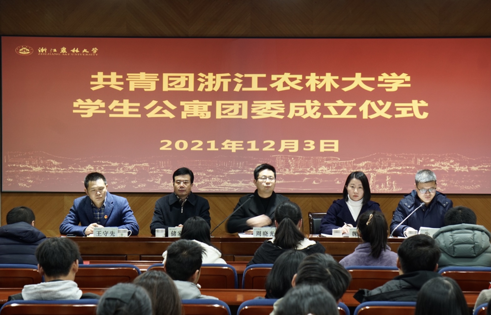 12月3日,学校召开首次公寓学生管理中心大会暨共青团浙江农林大学学生公寓委员会成立大会。学工部、校团委、后勤服务中心负责人出席会议,公寓学生管理中心成员、全体学生公寓楼长参加会议。