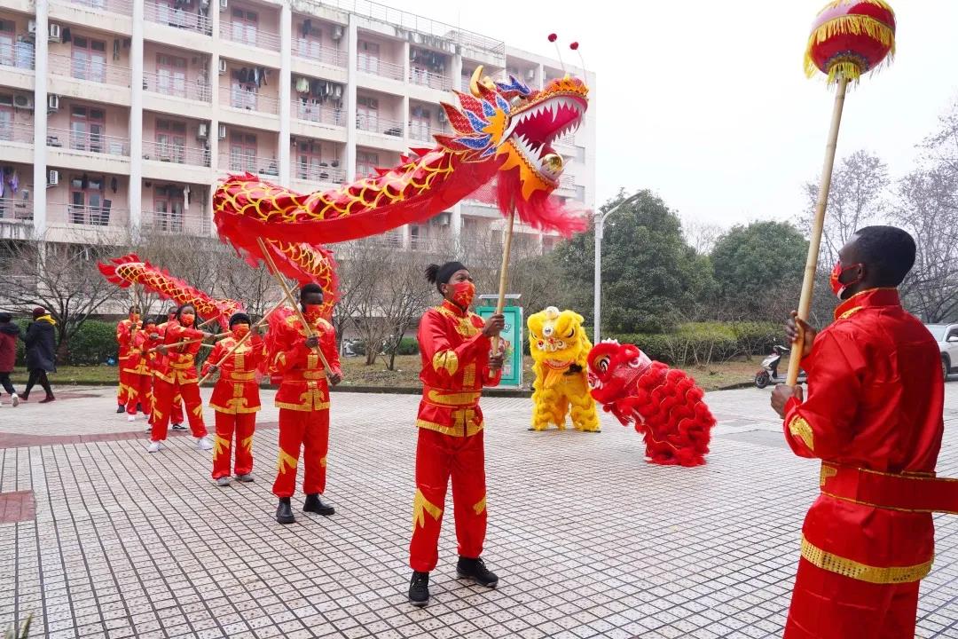 活动现场,教师们与国际生围在一起,做花灯、写福字、贴春联,其乐融融,寄希来年顺顺利利,福气满满,感受浓浓的“中国传统风情”。另一边,国际生们准备了别开生面的舞龙与舞狮表演。